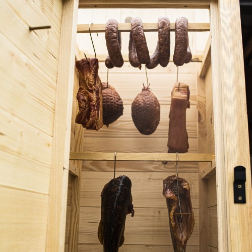 - Optimální podmínky pro uzení: Dřevěná konstrukce udírny poskytuje vynikající izolaci, která udržuje stabilní vnitřní teplotu a vlhkost. To je nezbytné pro rovnoměrné pronikání kouře do potravin a dosažení optimální chuti a textury.