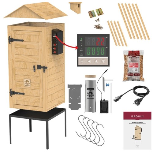 BROWIN DragON 200L je prémiová dřevěná udírna s generátorem kouře, navržená pro náročné domácí udírenské nadšence i menší komerční využití. S velkorysým objemem 200 litrů a pokročilým systémem generování kouře nabízí precizní kontrolu nad procesem uzení, což vede k dokonale vyuzeným masům, rybám, sýrům a dalším delikatesám. Tato udírna je ideální volbou pro ty, kteří hledají maximální komfort, efektivitu a konzistentní výsledky při studeném i teplém uzení.