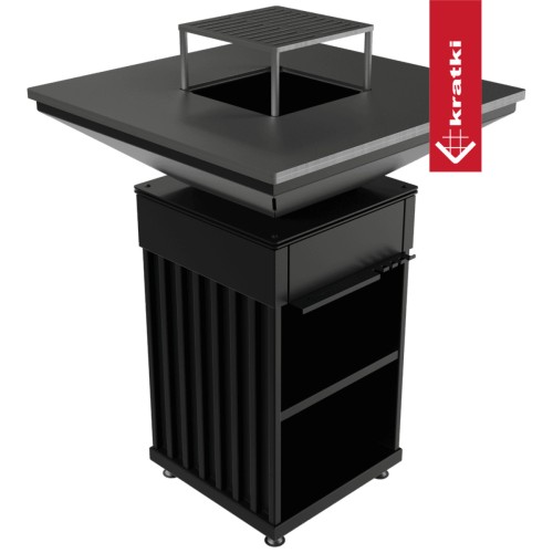 Vybaveno ocelovým roštem, praktickými úložnými přihrádkami na nádobí a koření s praktickou / prostornou dřevěnou dutinkou. Ohniště QUADRUM bbq není jen moderní zahradní gril, ale také plně vybavená venkovní kuchyň. Bude také perfektní jako zahradní ohniště s grilem - efektivní zdroj tepla za chladných večerů, stejně jako stylový a přirozený způsob osvětlení zahrady.