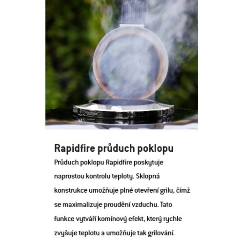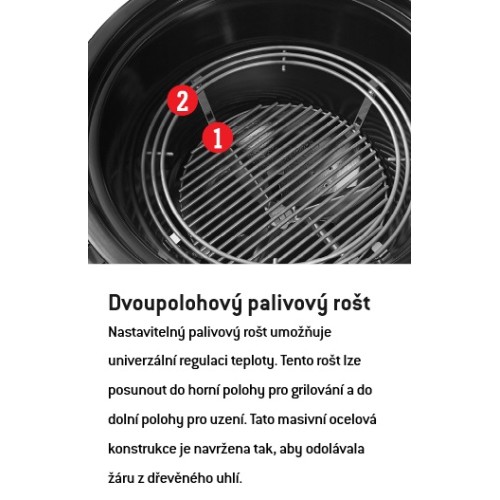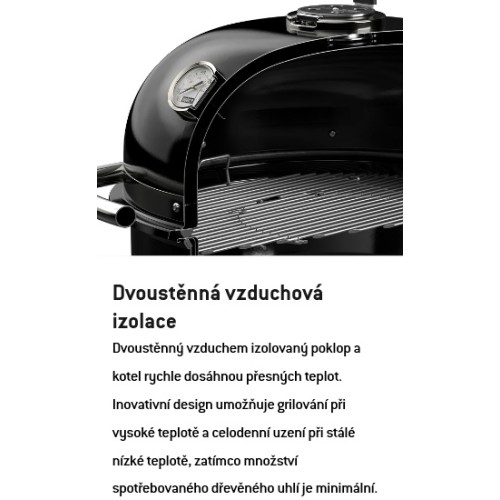 • Vestavěný teploměr: Umožňuje přesné sledování teploty uvnitř grilu bez otevírání poklopu.